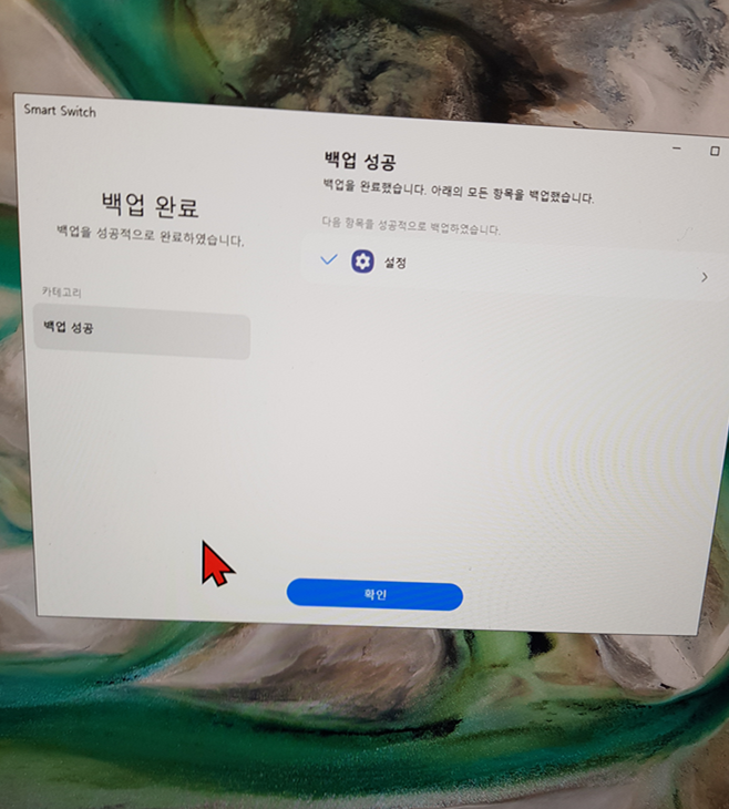 - 부팅이 성공하면 바로 스마트 스위치나백업을 진행합니다. 되도록 연락처 문자 하나씩 체크해서 진행합니다.